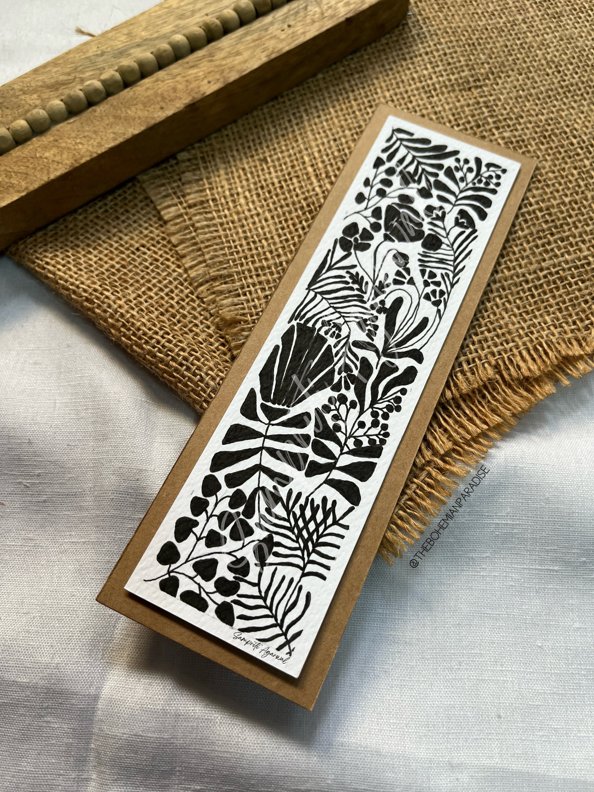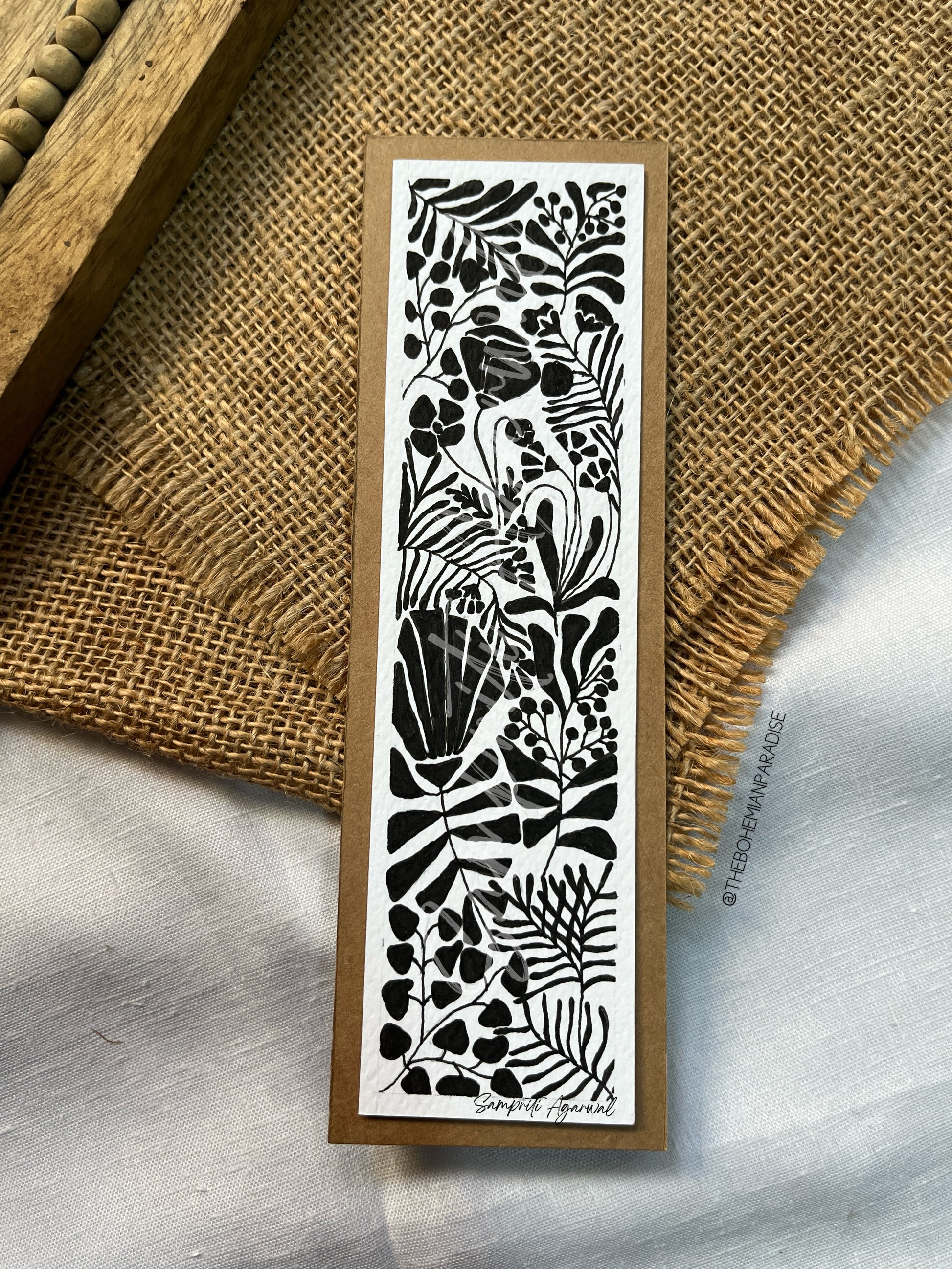 Step into a world of simplicity and elegance with “Monochrome Meadows.” This handmade bookmark is a timeless tribute to nature’s beauty, rendered in striking black and white. Crafted on premium 300 GSM art sheet using HIMI gouache colors, the intricate botanical patterns evoke the serenity of meadows in a minimalist palette. Perfect for book lovers and art enthusiasts, this bookmark is a sophisticated accessory that complements any collection while adding a touch of artistic charm to your reading moments.